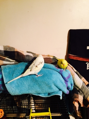 うちのインコ共は朝から濃厚なキスをしまくって朝からアツアツです(;´_ゝ`)