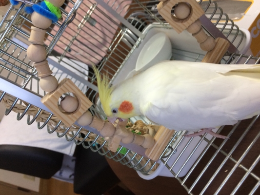 いつもびびり屋さんだったけど、くりおが私と遊んでるのを毎日見てたので、真似して飛んできて遊んでました( ´∀`)
