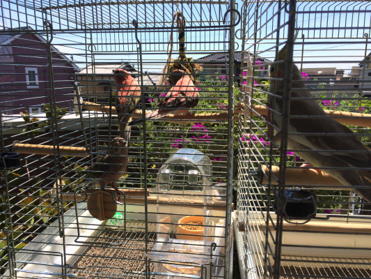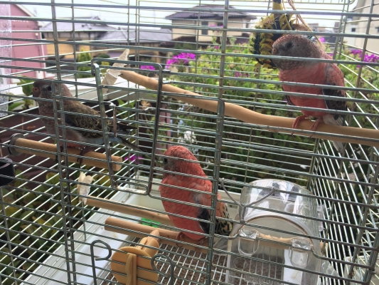 1つのケージで3羽の生活にも馴染んできています。