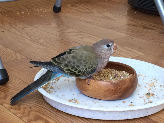 Pupuは今日はもう新しい環境に慣れて緊張がほぐれています。挿し餌もちゃんと食べてくれてるし、一安心です。