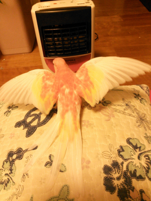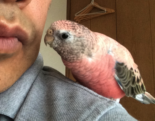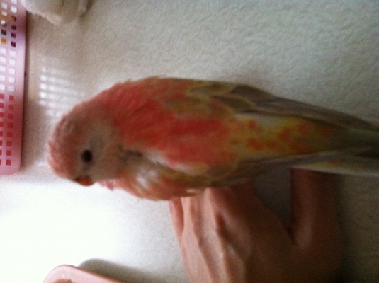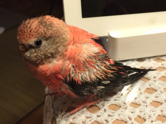 先月、お迎えしたばかりのピンクファロー♂?♀?のはる。