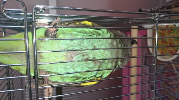 一度、ネズミガシラハネナガインコさんを抱っこさせて貰ったことがあるのですが、その仔もケージではコウモリみたいに逆さで休息していました。点目の鳥さんの表情が大好きです、写真にエッヘン!と吹き出しがついていると思うと、なおのこと可愛らしいですね♪