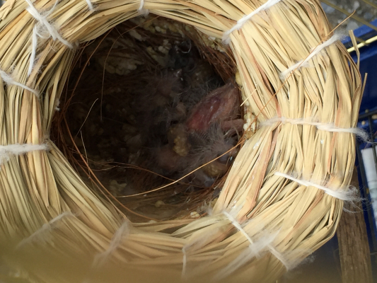 雛がもう少ししっかりしたら、親鳥の育児疲れや、羽が生えてくるまでの間、休息の別居を考えています。