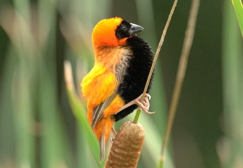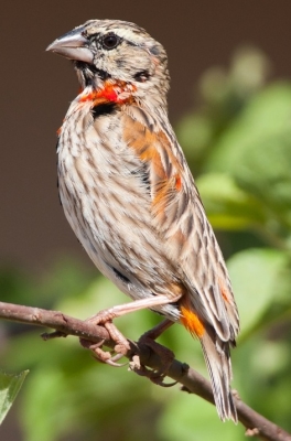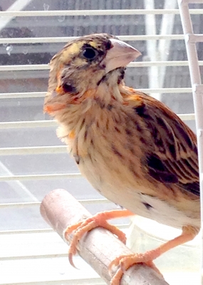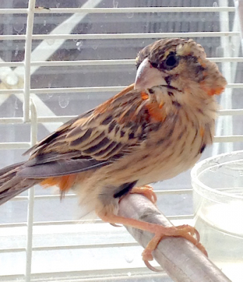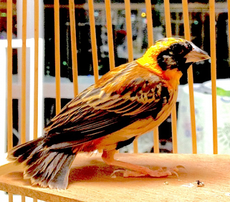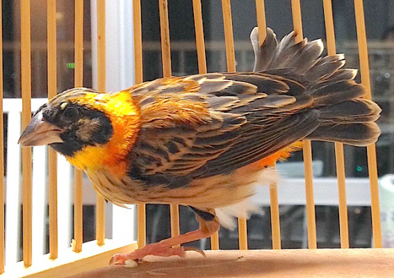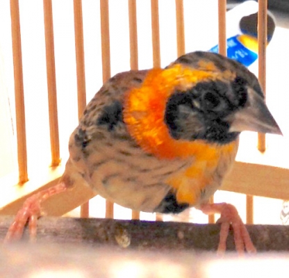 「キンランチョウNothern Red Bishop の若鳥だと思うよ〜〜!たぶん、♂の若。」だそうです。