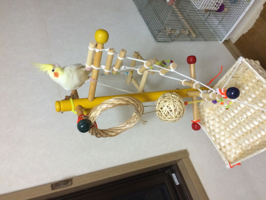 日中は毛布を外して明るいケージで鳥さんたちにすごして貰います。