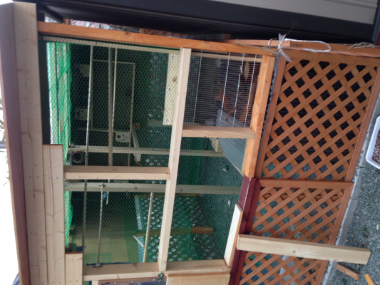 100均で売られている透明のアクリル板やテーブルクロス用のビニールで同様にケージを囲んであげる(覆う)のは如何でしょうか?