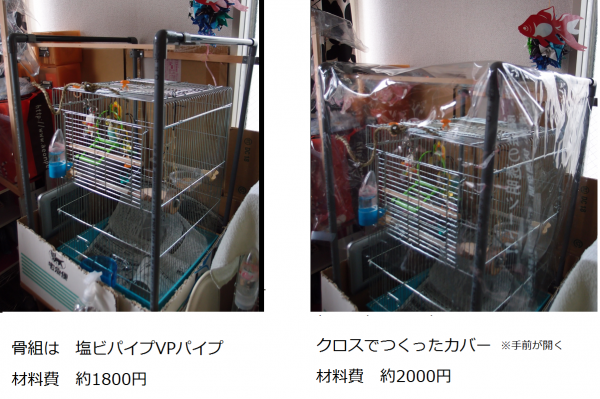 まず保温仕様のケージですが、ネットで「鳥 保温」で検索すると、色々と工夫されている画像を見る事が出来ます。
