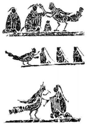 ウィキペディアで紹介されている人物像の他に、面白いことにこの人物は鳥人間の姿で描かれることがあります。獣医ではなく、人を治す医師です。