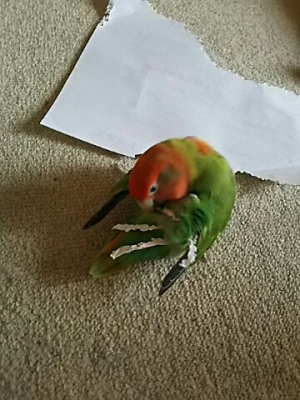 以前は私の手の中でおとなしく眠ったりしていたのですが夏に入ったころから以前にも増して噛み噛みが激しくなりまた、そこらじゅうにある紙をちぎっては背中にさす行動をしておりました。そして、羽を広げ交尾体勢?を毎日のようにしていました。