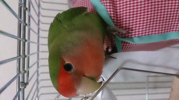 >多分ですが、コザクラインコだと思う。なんか短い単語しゃべっている。かわいい感じ♪