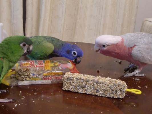 夫は、もっと大きなヨウムやモモイロインコを考えているようです。