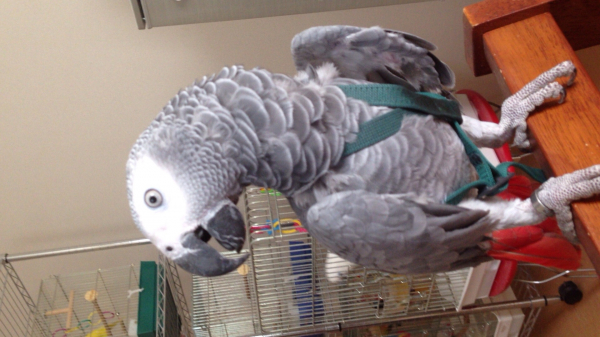 ヨウムちゃんのフライトスーツ姿、可愛いでしょうねー