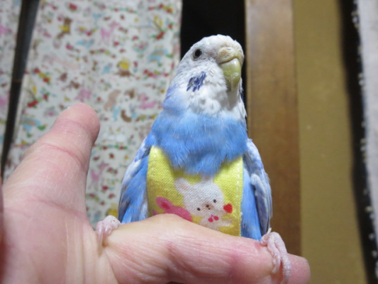 市販の物は羽に通すタイプなので愛鳥さんには着用時負担が大きいですけど、これは頭からかぶるタイプなので