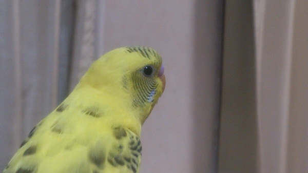 とても幼く、さし餌が終わったばかりの様子です。飛び方も上手ではないので、きっと保護された近くに飼い主さんがお住まいでなのではないかと思います。人に興味はあるようですが、手は怖がっています。