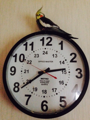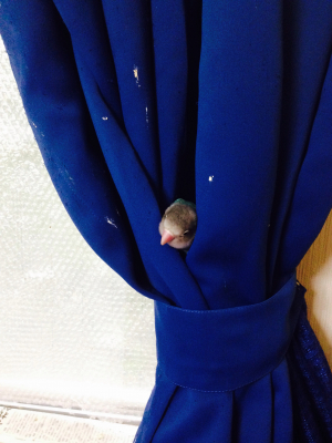 オカメ時計(笑) お気に入りの場所でノック行動 カーテン洗濯しなきゃ💥💦