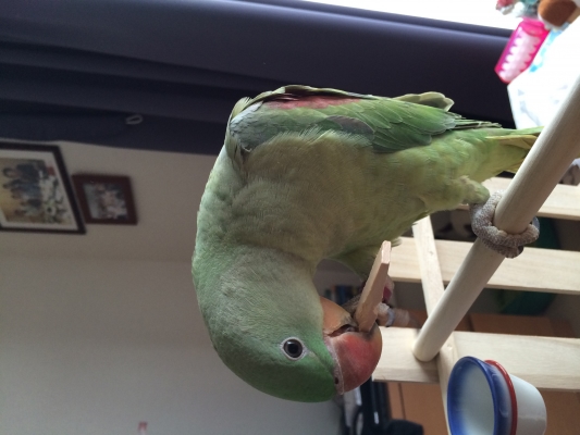 ただ爪とぎパーチに嘴を擦り付けると嘴がちょっと傷だらけになったりします…。
