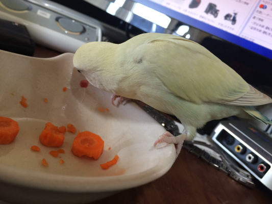 ピノちゃん、しっかり乾いた餌を食べているようなので、もう少しだと思います。