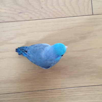 背中はグレーっぽい水色、中の羽根は綺麗な深い青色です。