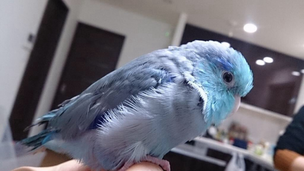 頭は水色で、目の横に青い色が入っています。
