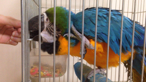コンゴウインコは温和、図太い性格で