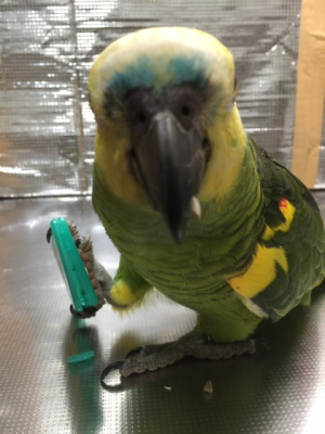 アオメキバタン(4歳 オス 我が家に来て2年)のおもちゃに苦戦してます。共働きなこともあり、昼間にできるだけ遊べるようにおもちゃを与えたいのですが…