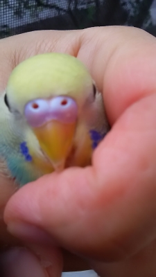 ?嘴に鼻をつけインコの鼻を見ると青く見える