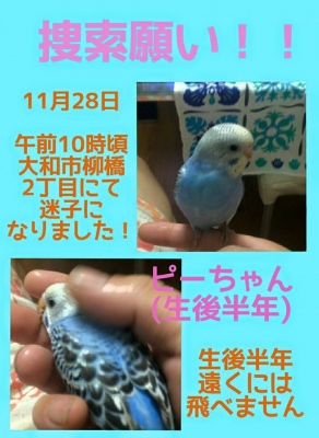 11月28日午前10時頃、神奈川県大和市柳橋2丁目で、生後半年のセキセイインコ(青色)が迷子になりました。