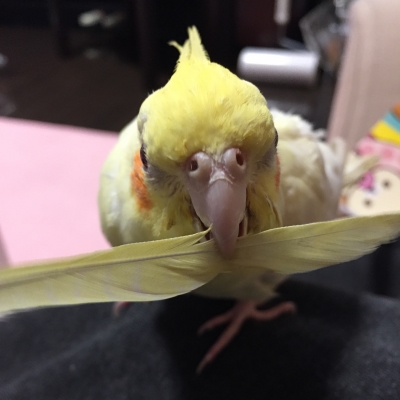 写メ、ミコちゃんの抜けた羽で遊んでるんですね(^_^)