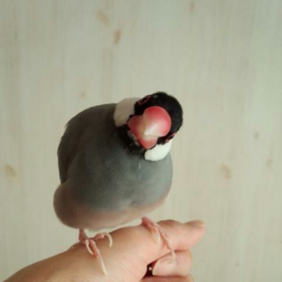 桜文鳥の名前は「じゅら」です。とてもよくなついていますが、怖がりです。