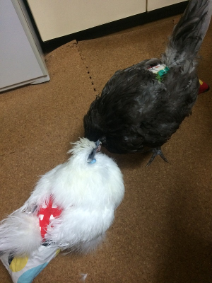 おむつを着けたペット鶏さん達を直に見て頂き、エサやりなどでふれあって頂きました。
