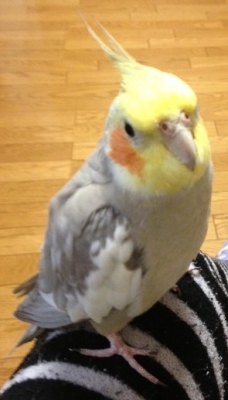 年齢は5歳でおしゃべりはあまりしませんが、口笛を吹くと一緒歌います。オカメに共通することですが、かなり臆病です。