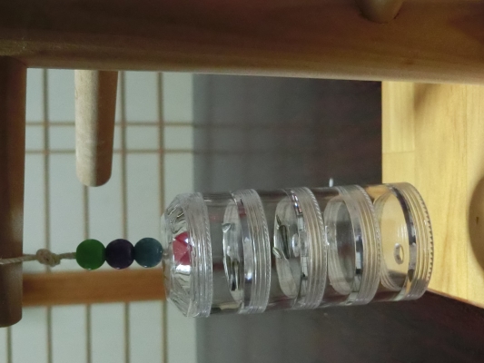 旦那がこの週末、チャミの玩具を作ってくれ、放鳥した時に今では一番のお気に入りになっています。