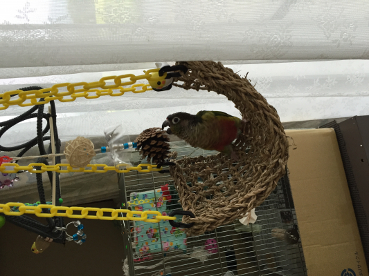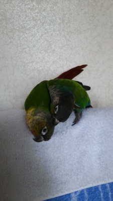 9ヵ月のホオミドリウロコインコ、チャミを2月21日にお迎えしました。