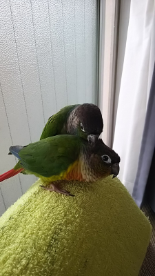 同時放鳥したら2羽で遊ぶんですか? うちは放鳥したら基本私につきまとってくるんですけどここにもう一羽いたらどうなるんだろうって考えます。