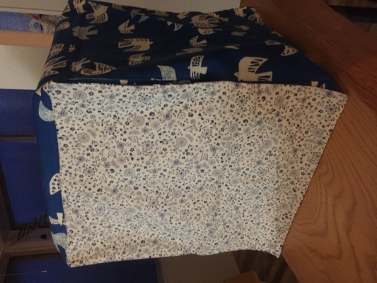 先日、鳥柄の布を見つけたので早速購入しておやすみカバーを作ってみました。