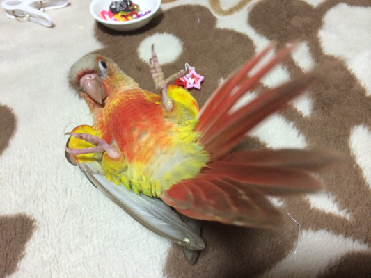飼い主もインコもビビりなもので(ーー゛)