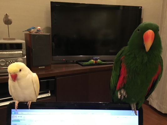 前の鳥(ワカケ)の時は1羽飼いで寂しいかと思い、TVを付けていました。