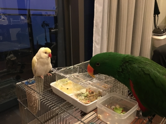 前の鳥(ワカケ)は鳥さんが多くいる家にお預かり頂いて楽しそうにしていましたが