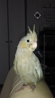 オカメインコで全体的にグレーですが顔は緑がかっています。