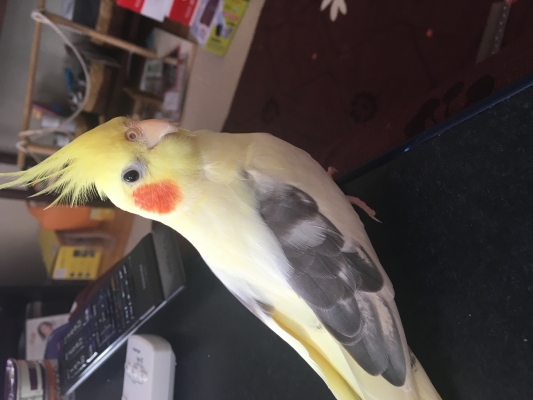 2016年4月5日正午 黄色で頬がオレンジ、背中に非対象のグレーの模様があります。 名前はルン 雄 8ヶ月です。 保護された方はご連絡お願いいたします。