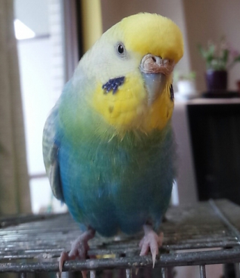 特徴:頭が黄色で体が水色〜緑 9才のメスです。