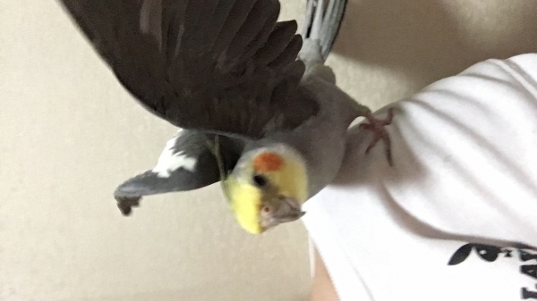 行動:人懐っこくてすぐ肩や頭に乗る。鉛筆が好き。お菓子の袋の音が好き。子供のキャーと言う声が好きで大きい声で真似をする。