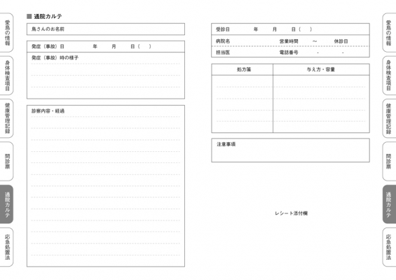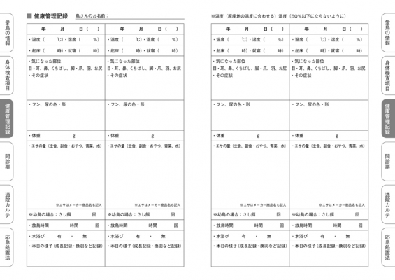 大手鳥専門病院でも取り扱っている愛鳥健康管理手帳が