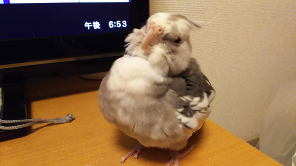 重さは86グラム位で、オカメインコとしては普通位の大きさだと思います。