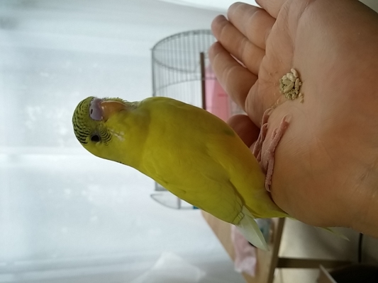 ・とても小柄なセキセイインコです。まだ若い鳥の様です。