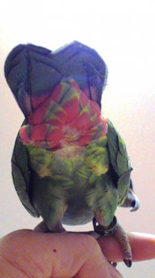 私が子供のころ飼っていた、こきぼうしいんこ「パナマボウシインコとオウムさんに言われましたが」その仔の羽の根元の白いのをしごくのが大好きでした。