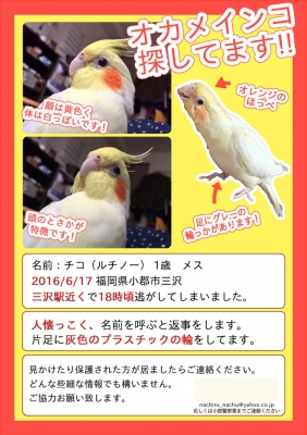 特徴:足輪があり、全体的に黄色と白で頬がオレンジです。