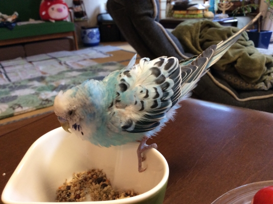 2016年6月20日午後3時頃、長野市田中付近で保護されたセキセイインコを代理保護しています。