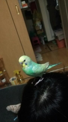 セキセイインコ オス 体はエメラルドグリーン、顔は黄色 ゴニョゴニョしかおしゃべりは出来ません