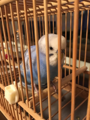 今日、奈良県香芝市で水色のセキセイインコを保護しました。